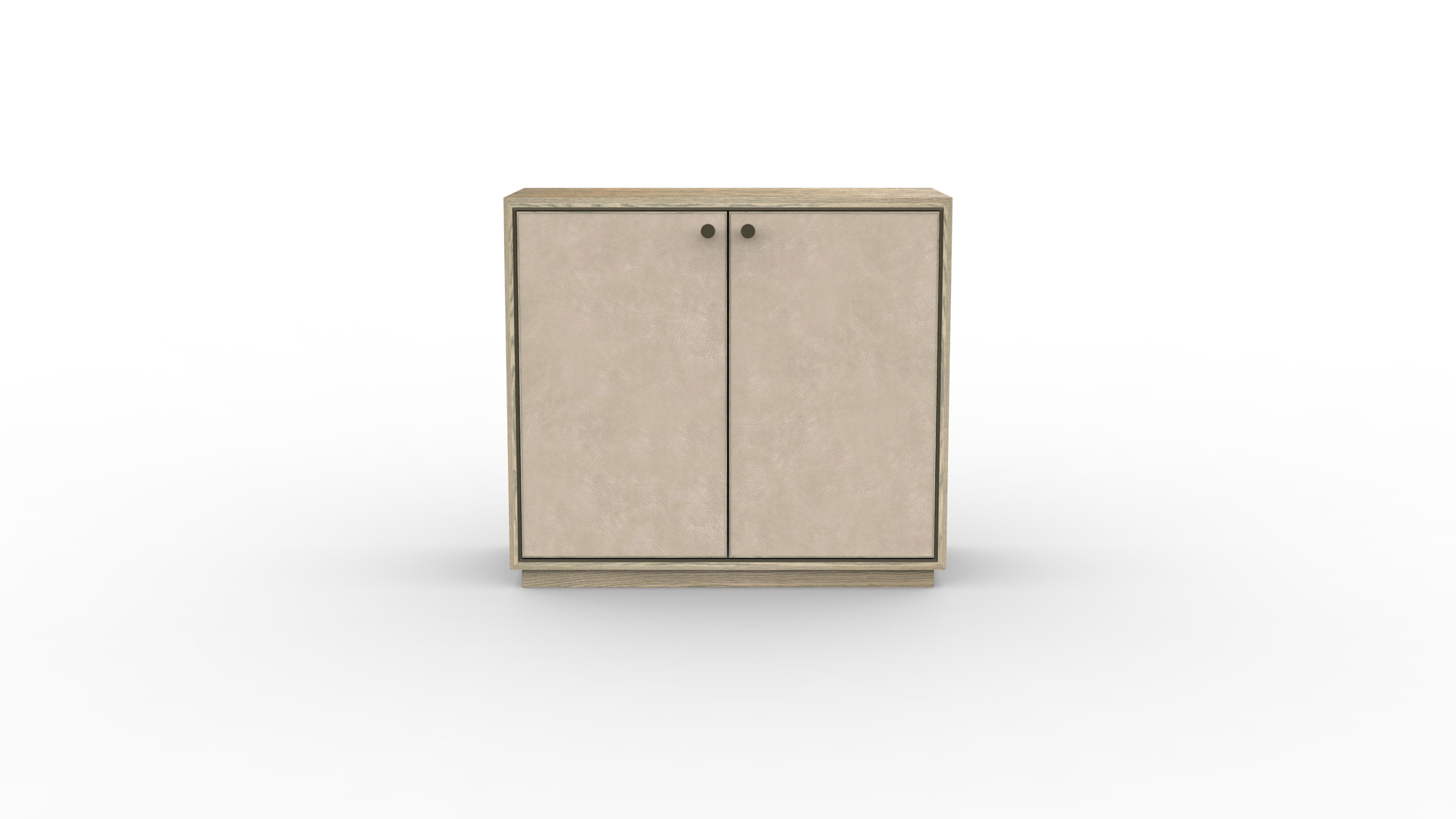 The Newark Cabinet combines a bevel-edged frame with brass trim for refined impact. Soft-closing doors open to reveal a cupboard with adjustable shelving, while contrasting door-front finishes elevate its individuality.